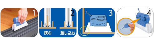 2.挟む、差し込む!サッシの形状や汚れ具合によって、使い方を変えてお掃除することができます。