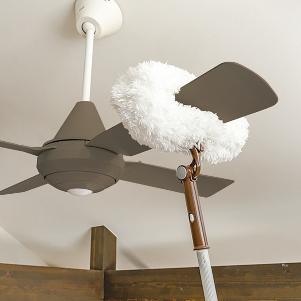 モップはシーリングファンの羽根に通して使用できるリング状。羽根を逃さず両面同時にお掃除できます。