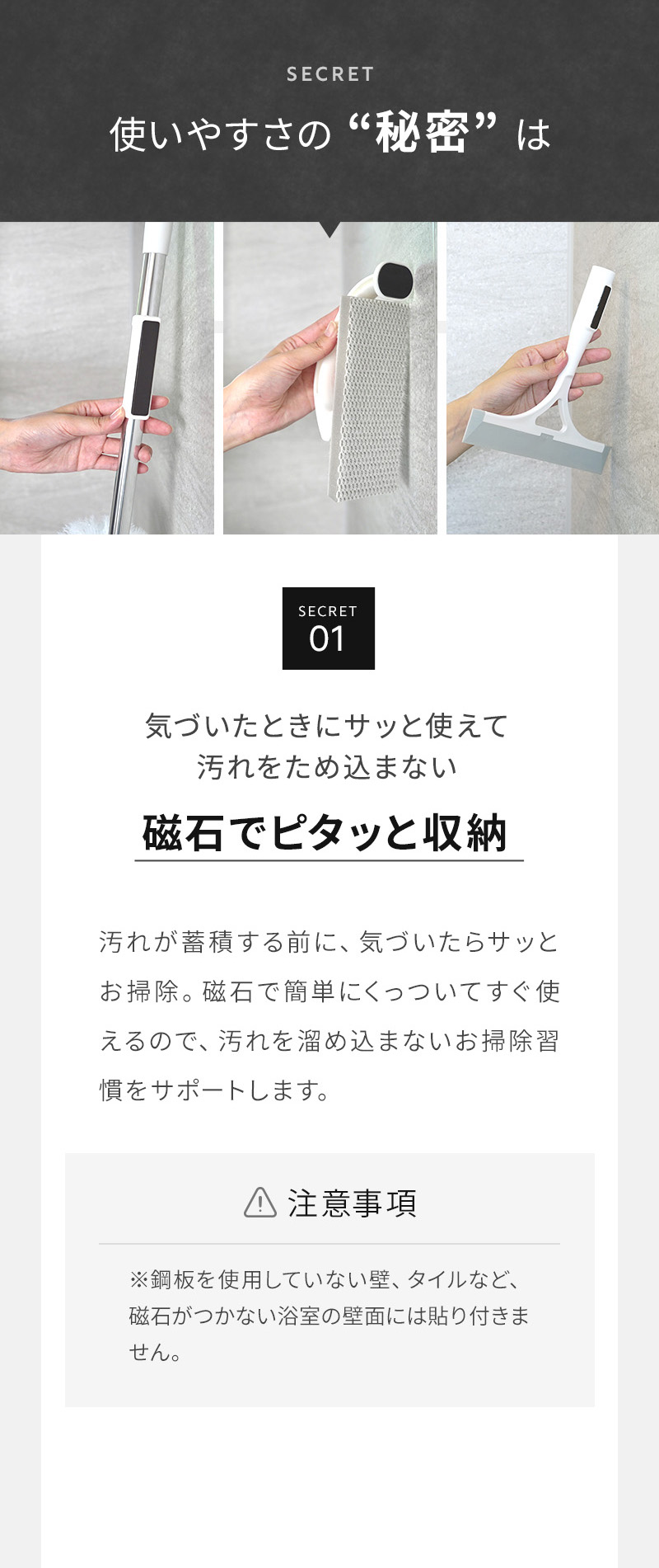 ※磁石がつかない浴室の壁面には貼り付けできません。