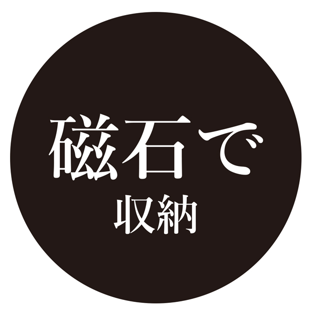 ※壁の表面がザラザラしている場合には、収納時に磁石のコーティングが剥がれ、磁石の黒い痕がつく可能性がございますので、ご使用はお控えください。