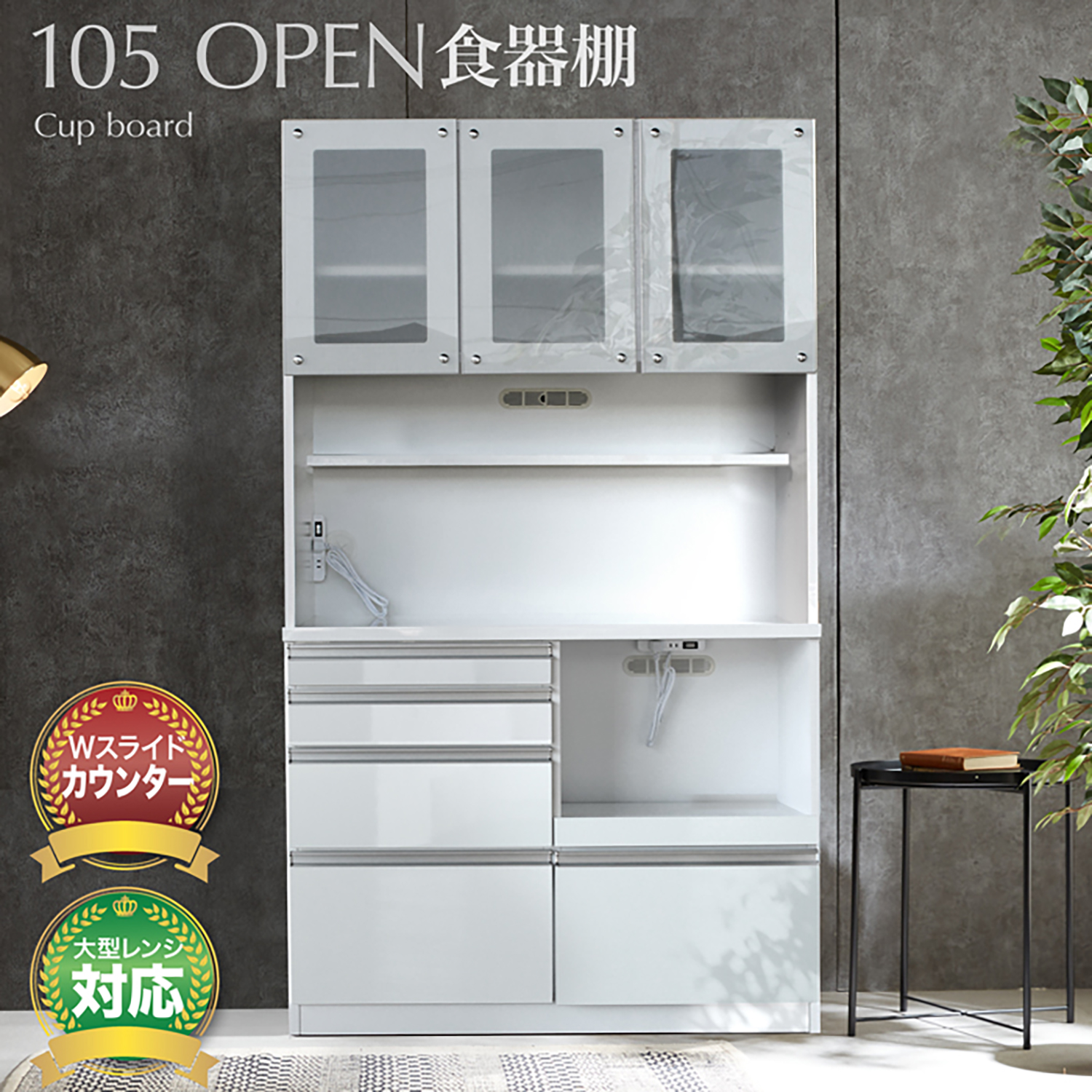 食器棚 カップボード 完成品 キッチンボード レンジボード 105cm幅 家事 調理台 レンジ台 生活向上 キッチン収納棚 家事 ダイニングボード