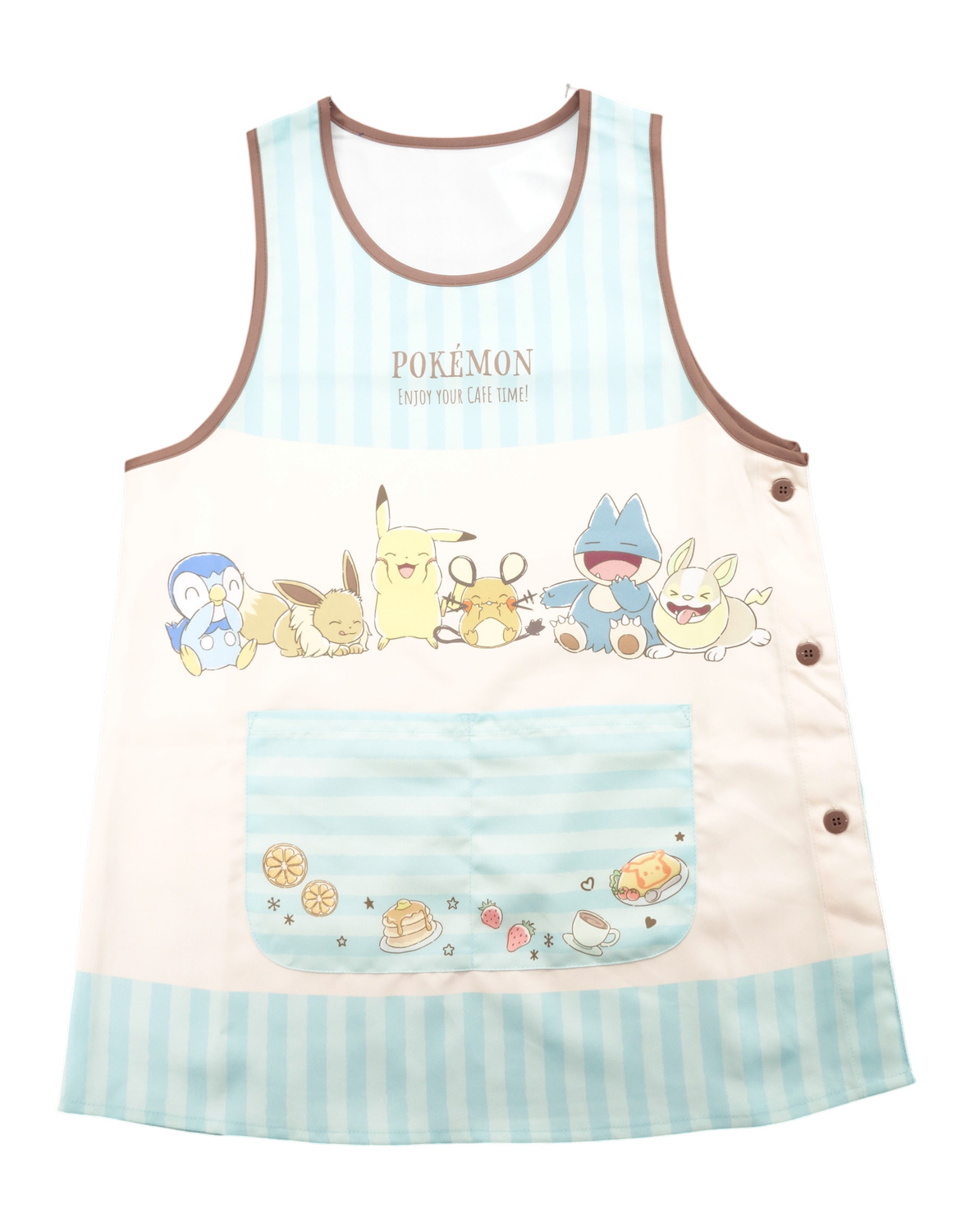ポケモン エプロン ストライプ 転写 サイドボタン 保育士 キャラクター グリーン 46206