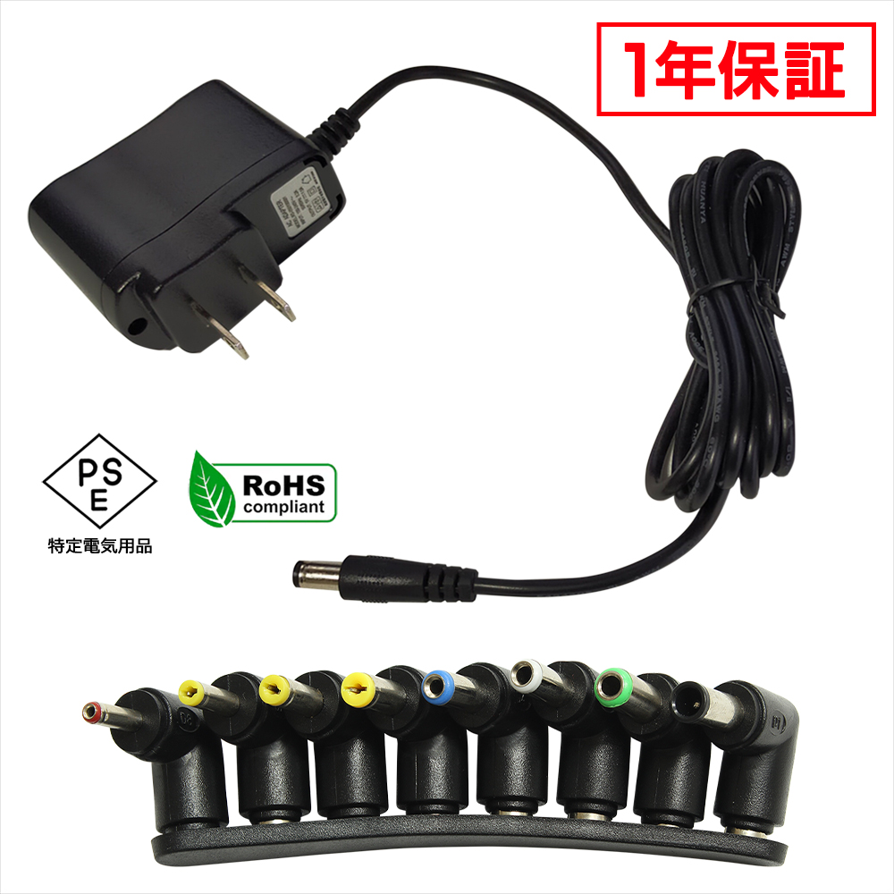 0701 ACアダプター 5V/1A [5.5-2.1mm] (RS-050100001) AC100V〜240V + L型変換アダプタ 8種セット PSE/RoHS対応 安心の1年保証 ×1セット