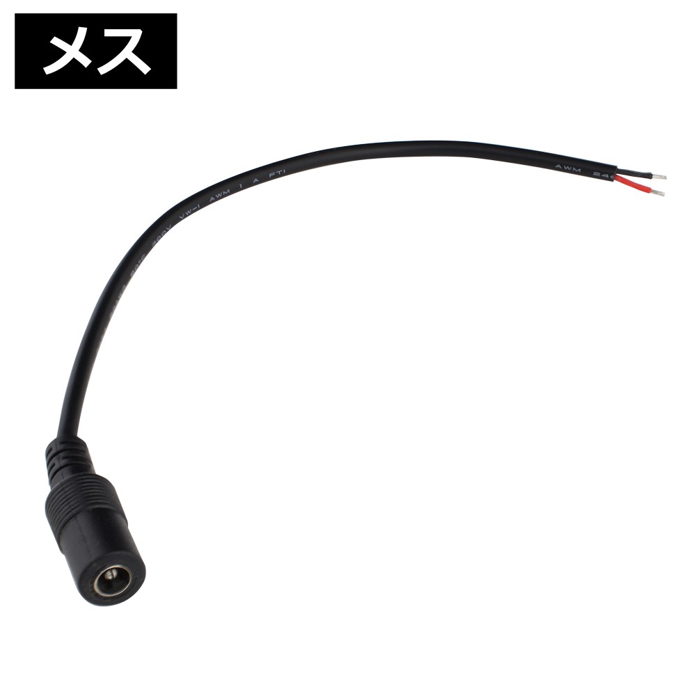 DCコネクタメス (5.5mm×2.1mm) 20cm 切りっぱなし AWG20×1個