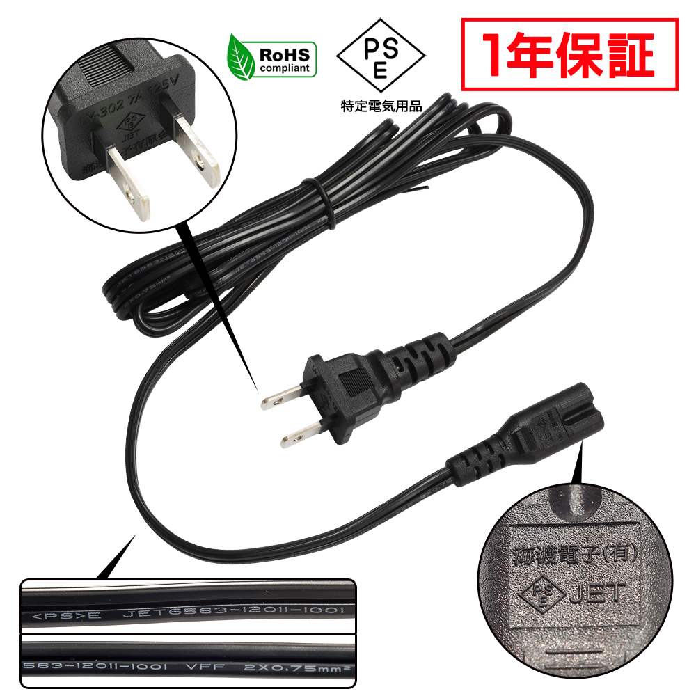 メガネ型 電源ケーブル ACケーブル 1.8m PSE適合 RoHS対応 安心の1年保証 ×1個