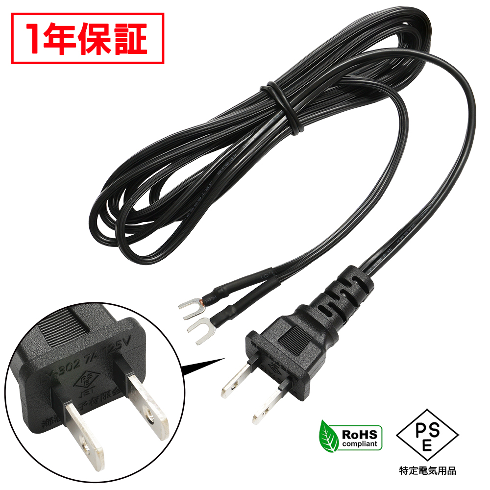 電源ケーブル ACケーブル 1.8m Y形裸圧着端子 PSE適合 RoHS対応 安心の1年保証 ×1個