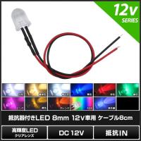 LED 発光ダイオード 8mm 砲弾型 12V車用 抵抗付き クリアレンズ ケーブル8cm×10個