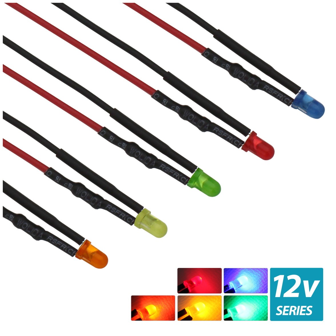 LED 発光ダイオード 3mm 砲弾型 12V車用 抵抗付き カラーレンズ ケーブル18cm ×10個