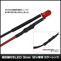 [4424] LED 発光ダイオード 3mm 砲弾型 12V車用 抵抗付き カラーレンズ ケーブル18cm 赤色