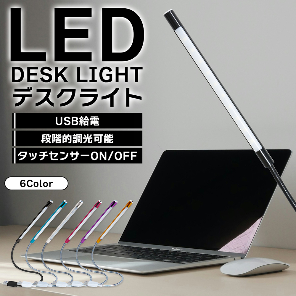 USB LED デスクライト 照明 室内 読書灯 フレキシブル 調光 タッチセンサー ×1個