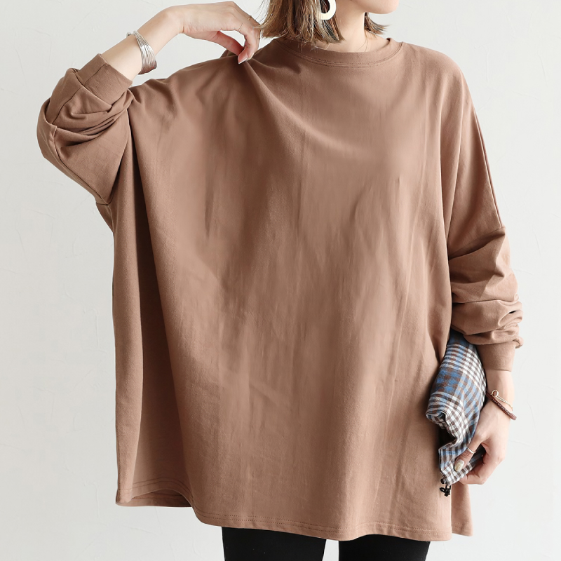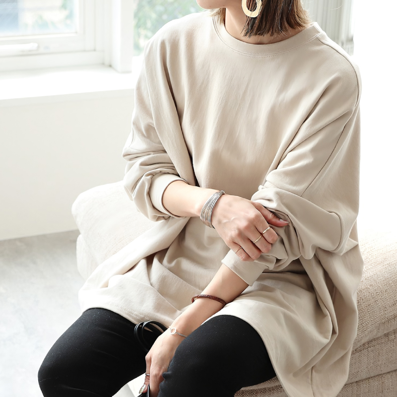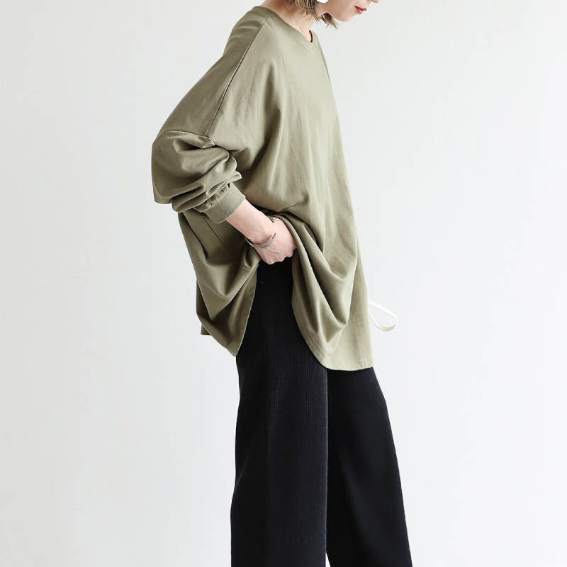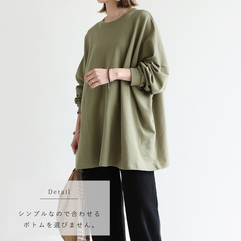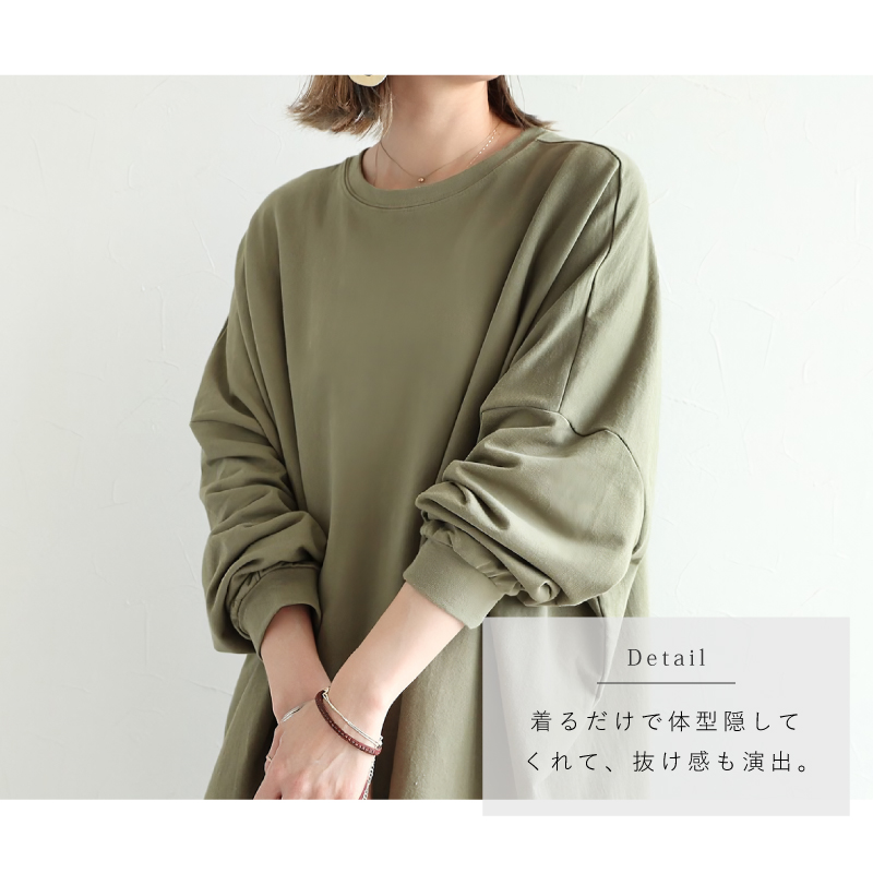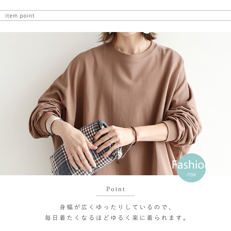 身幅が広くゆったりしているので、毎日着たくなるほどゆるく楽に着られます。