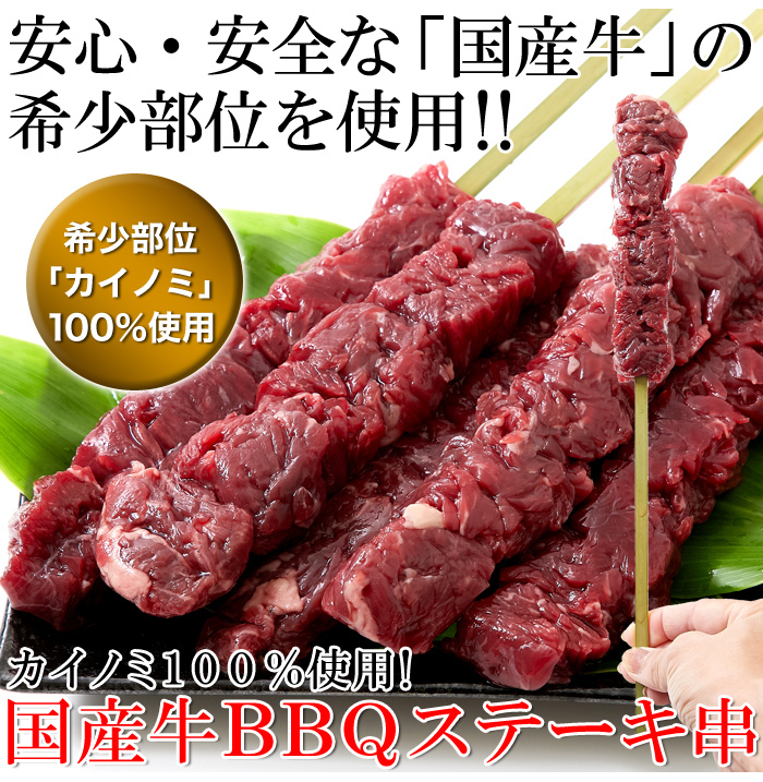 希少部位「カイノミ」100%使用!!国産牛BBQステーキ串約60g×5本(約300g)[A冷凍]