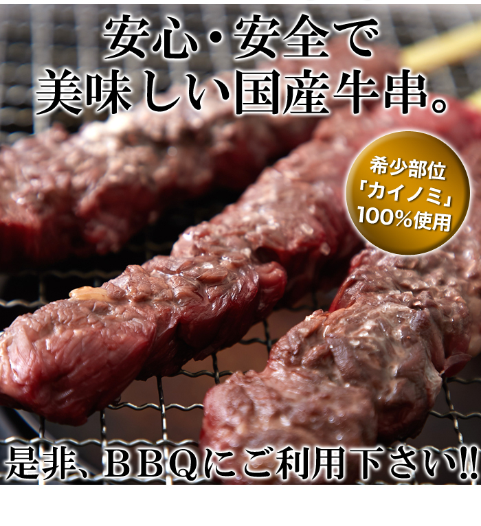 ■安心・安全で美味しい国産牛串。希少部位「カイノミ」100%使用