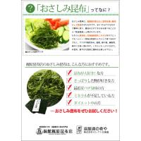 北海道産(函館産)の若い昆布を食べやすく細切り加工した、サラダ感覚のおさしみ昆布です。