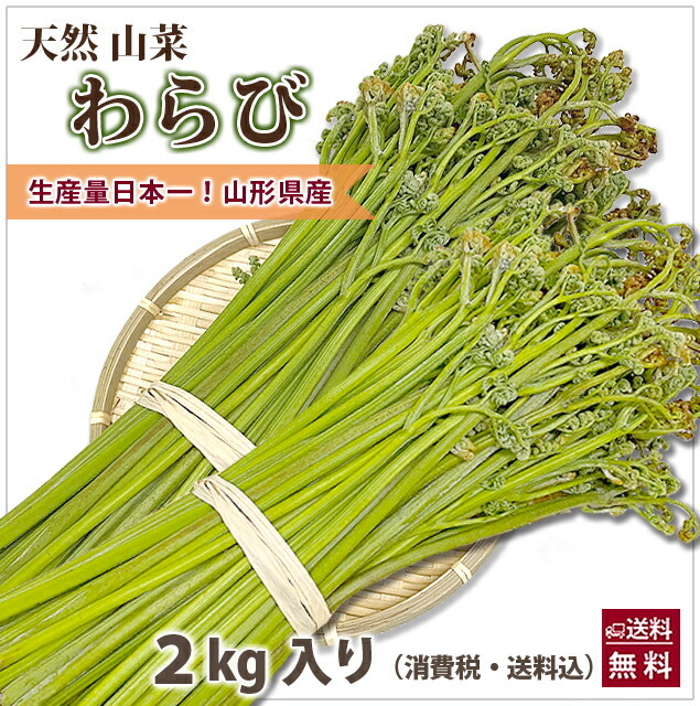 山形県産 山菜 天然わらび 蕨 生ワラビ 生わらび 2kg 送料無料 天然 村山市 山形 ワラビ ワラビの採れる場所 漢字 レシピ ぜんまい 栄養 農産物 ワラビのアク抜き重曹 ワラビのあく抜き方法 わらびもち 蕨 ワラビー わらび保存