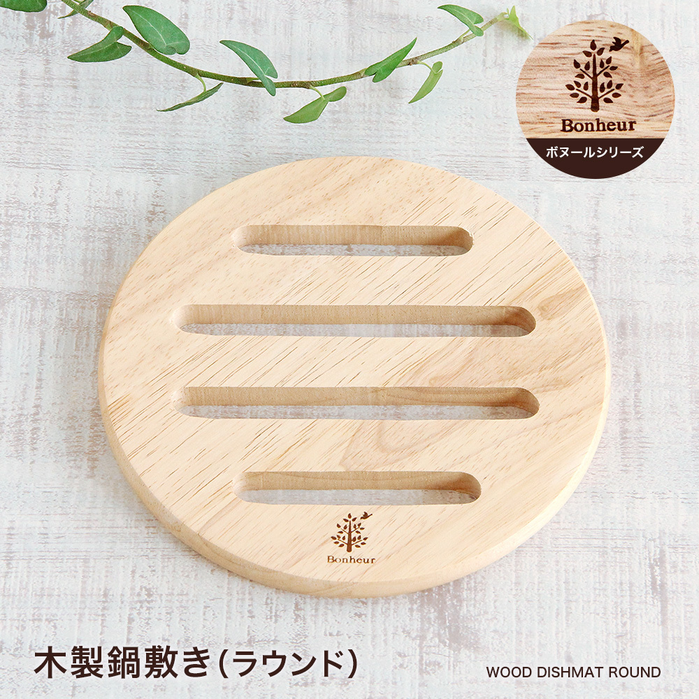 木製鍋敷き(ラウンド) ボヌール おうち時間 おうちカフェ 木 ナチュラル 天然木 カフェ風 おしゃれ モダン 北欧 カフェ食器 デッシュマット