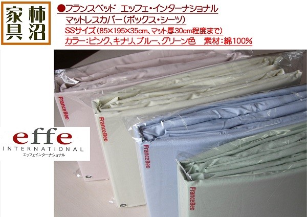 ボックスシーツ(マットレスカバー) SSサイズ(セミシングル)85×195×35cm フランスベッド エッフェインターナショナル 4色から選択可
