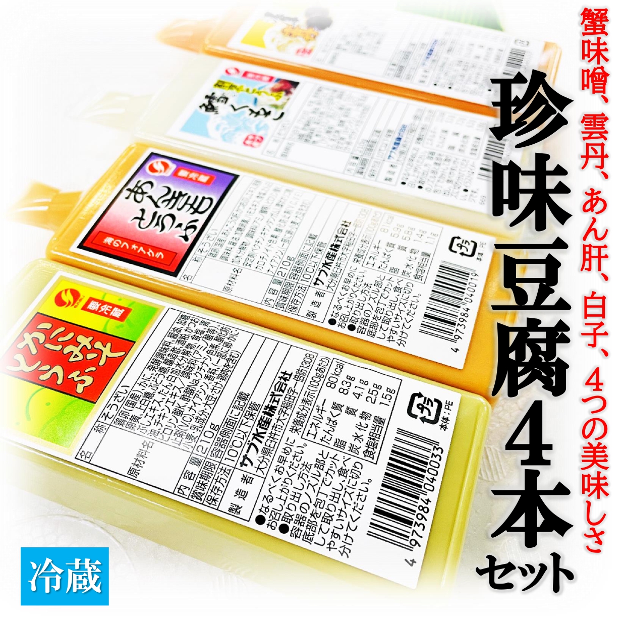 珍味豆腐 4本セット 蟹味噌 うに あん肝 鱈白子 高級珍味を使ったおとうふ かにみそ豆腐 うに豆腐 あん肝豆腐 白子豆腐