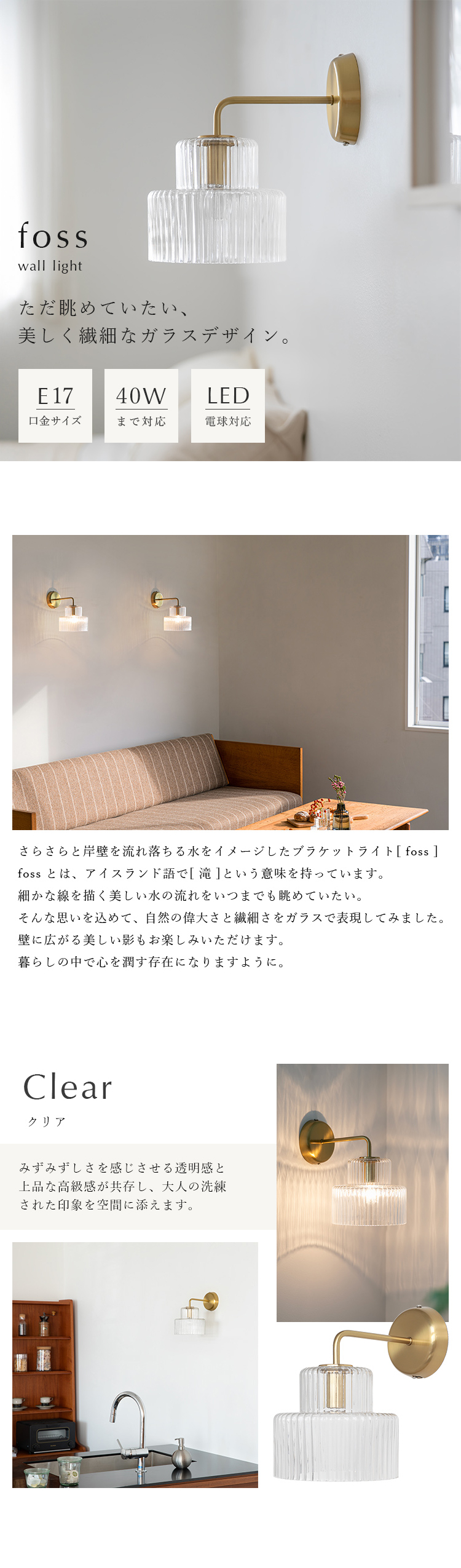ブラケットライト おしゃれ 北欧 schon foss フォス 階段 玄関灯 洗面所 ガラス 真鍮 間接照明 トイレ かわいい 照明器具 内玄関 廊下 ウォールライト