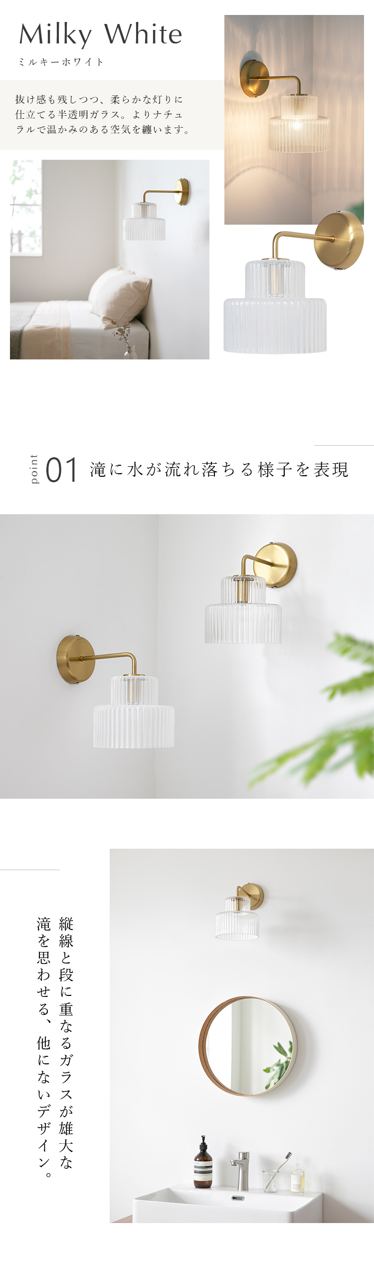 さらさらと岸壁を流れ落ちる水をイメージしたブラケットライト[ foss ]