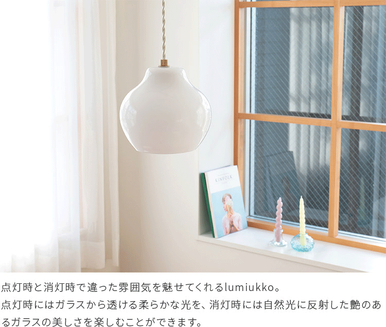 なめらかで美しい曲線が魅力的なガラスシェードと真っ白な雪を彷彿とさせるカラーリングが美しいペンダントライト [ lumiukko ]