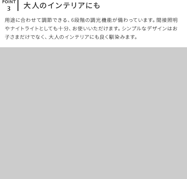 6段階調節できる優しい明かりで赤ちゃんにもママにもうれしい照明です。