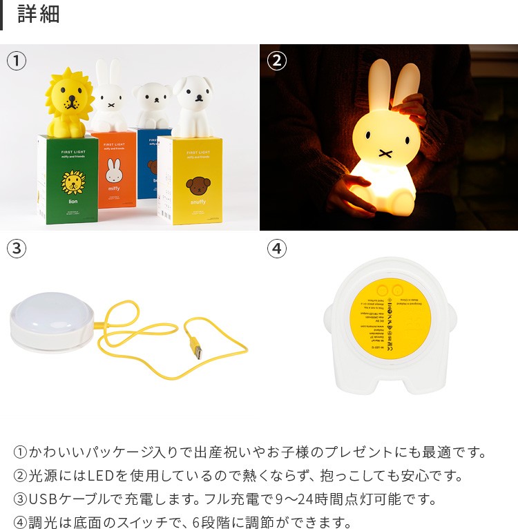 LEDインテリアライト ミッフィー プレゼント 母の日 父の日 授乳ライト 間接照明 充電式 かわいい led照明器具 卓上ライト ファーストライト miffy and friends