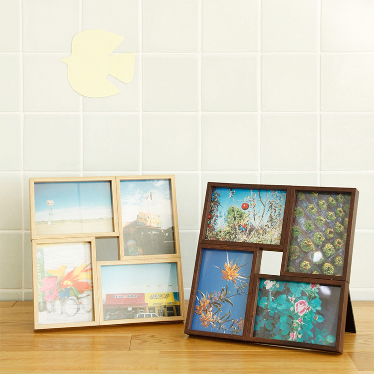 ストーリー性のある飾り方。インテリアにさり気なく飾れる4枠が連なったシンプルなフォトフレーム。