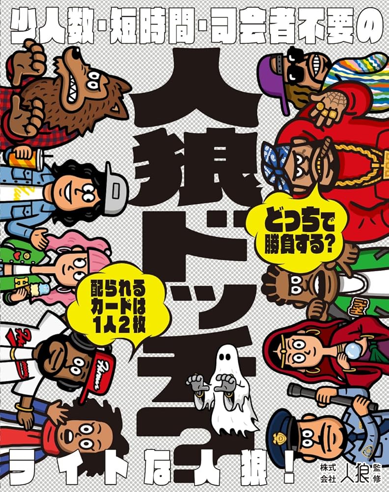 | 商品の説明 | 最少3人、最短5分、司会者なしでサクッとできる! 2つの役職から好きなほうを選ぶ人狼ゲーム。 ・“どっち”かやりたい役職を選ぶ! ・1人2枚分の情報があるから、ヒントが多くて遊びやすい! ・少人数でも奥深い推理と駆け引き! ・1日勝負だから短時間でできる! ・司会者なしでできる進行! ・警察、DJ、ラッパーなど波乱を起こす独自の役職! 【遊び方】 1人2枚配られるカードからプレイしたいほうを選んで手元に置き、もう1枚は場に置く。 [明け方]人狼の確認。能力者のアクション。 [昼間]みんなで議論。 [昼過ぎ]能力者のアクション。 [夕方]再び、みんなで議論。最後に投票。 一番票の多い人が追放される。追放された人の正体や、投票先の正体で勝者が決定! 【役職】 人狼×3 市民×7 占い師×1 警察×1 DJ×1 裏切り者×2 おばけ×1 目撃者×1 ギャングのボス×1 ラッパー×1 プレイ人数:3~8人 プレイ時間:約5~10分 ※本商品は、2018年発売の「人狼ドッチ」のリニューアル商品です。 [セット内容]役職カード19枚・役職一覧/進行カード1枚・説明書 |