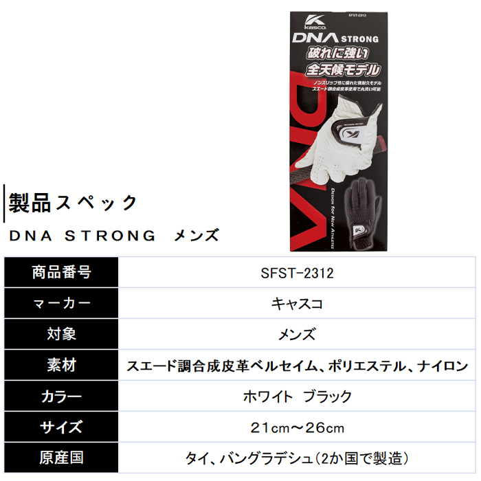 【スプリングセール開催中】SFST-2312 キャスコ DNA STRONG ゴルフグローブ 合皮 ストロング