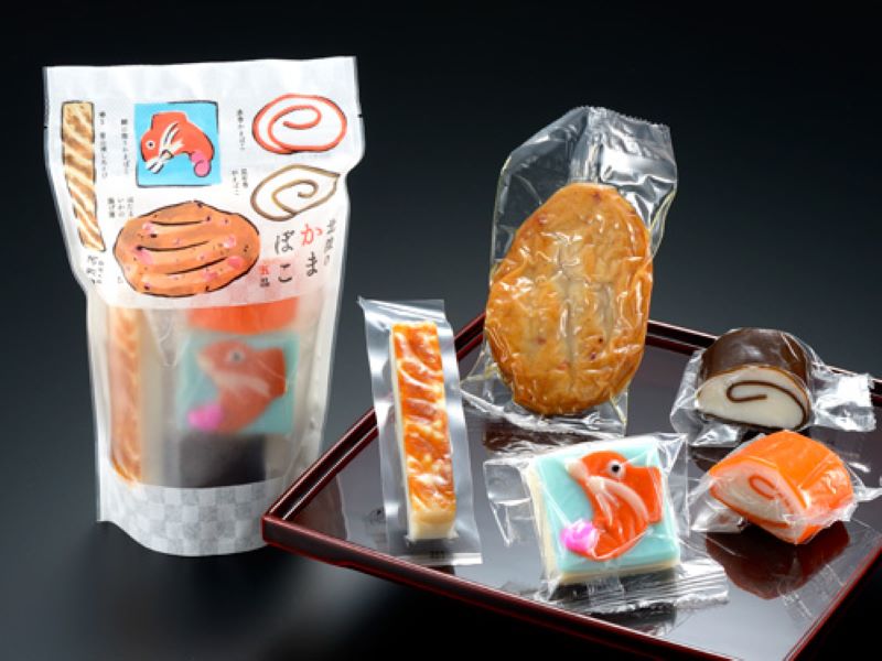 栄養成分表示■赤巻かまぼこ(1個(標準42g)あたり)エネルギー:38kcalたんぱく質:4.2g脂質:0.04g炭水化物:4.7g食塩相当量:0.88g■昆布巻かまぼこ(1個(標準42g)あたり)エネルギー:37kcalたんぱく質:3.7g脂質:0.04g炭水化物:5.3g食塩相当量:0.84g■鯛の飾りかまぼこ(1個(標準60g)あたり)エネルギー:51kcalたんぱく質:6.5g脂質:0.18g炭水化物:5.8g食塩相当量:1.26g■ほたるいかの揚げ蒲(1枚(標準60g)あたり)エネルギー:54kcalたんぱく質:5.4g脂質:0.75g炭水化物:6.5g食塩相当量:1.10g■棒S 富山湾しろえび(1本(標準27g)あたり)エネルギー:25kcalたんぱく質:3.2g脂質:0.1g炭水化物:2.6g食塩相当量:0.5g【栄養成分表示は過去の分析(公定法)による参照値です】■でん粉含有率:赤巻かまぼこ…7%、昆布巻かまぼこ…6%、鯛の飾りかまぼこ…6%、ほたるいかの揚げ蒲…8%、棒S 富山湾しろえび…6%■ほたるいかの揚げ蒲:製品中にほたるかを6%使用(仕込み時)■棒S 富山湾しろえび:製品中に白えび粉末を1%使用(仕込み時)■そのままでも美味しく召し上がれます。■保存料は使用しておりません。■開封後はお早めにお召し上がりください。■卵・乳成分・小麦・えび・かにを含む製品と同じ施設で製造しています。■製品中の黒または赤い斑点は、魚の皮です。