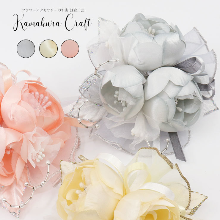 コサージュ 結婚式 卒園式 卒業式 入園式 入学式 フォーマル ピンク ベージュ 金 ゴールド グレー 送料無料 日本製 華やか 七五三 お呼ばれ ケース付き 丸バラ