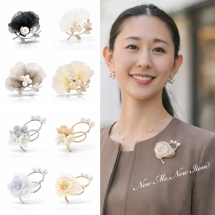 ブローチ コサージュが一体となった 新しい フォーマルスタイル。