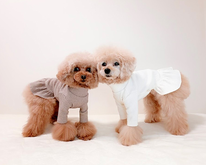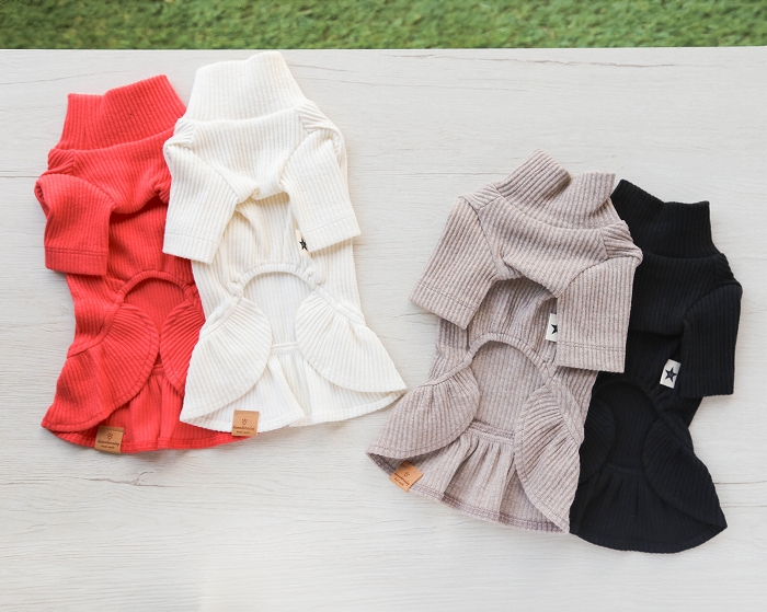 | 裾のフリルがふんわり広がり、わんちゃんのシルエットをより可愛らしく見せてくれます! |