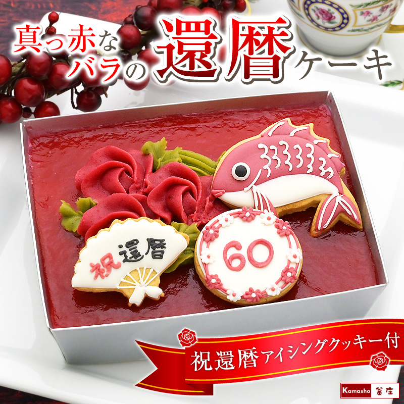 | ★真っ赤なバラの還暦ケーキ祝還暦アイシングクッキーセット ●ミックスベリーチーズケーキ×1 【原材料】生クリーム(北海道産)、苺ピューレ(いちご、砂糖)、プロセスチーズ、砂糖、ラズベリーピューレ(ラズベリー、砂糖)、白餡[白生餡、砂糖、還元水飴、寒天、食塩]、鶏卵(福島県産)、ブルーベリーピューレ(ブルーベリー、砂糖)、乳等を主要原料とする食品、小麦粉、赤ビーツ、牛乳、コーンスターチ、抹茶/乳化剤、ゲル化剤(カラギナン)(一部に乳成分・大豆・卵・小麦を含む) 【栄養成分表示(100g当たり)】エネルギー278.1kcal、たんぱく質2.8g、脂質17.8g、炭水化物29.1g、食塩相当量0.1g(推定値) ●アイシングクッキー3種セット 【原材料】砂糖(国内製造)、小麦粉、バター、鶏卵、乾燥卵白、天然食紅(ビーツ)/香料、着色料(植物炭末)(一部に卵・乳成分・小麦を含む) 【栄養成分表示(1枚当たり)】エネルギー106.4kcal、たんぱく質1.1g、脂質4.0g、炭水化物16.8g、食塩相当量0.0g(推定値) 【保存方法】要冷凍(−18℃以下) 【販売者】(株)釜庄 福島県いわき市小名浜字吹松2-10 | |