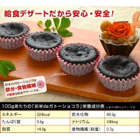食品表示 | ●お米deガトーショコラ40ヶ(メーカー箱入)×2 【原材料名】豆乳、砂糖、米粉、植物油、ココアパウダー、水溶性食物繊維、カカオマス、加工デンプン、膨脹剤、ピロリン酸第二鉄 【大きさ】直径約6cm×高さ約2.6cm 【1個あたりの重さ】約30g 【保存方法】要冷凍(−18℃以下) 【販売者】(株)釜庄 福島県いわき市小名浜字吹松2-10 | 備考 | ※原料価格高騰の為、価格変更しました(2024/09/14) |
