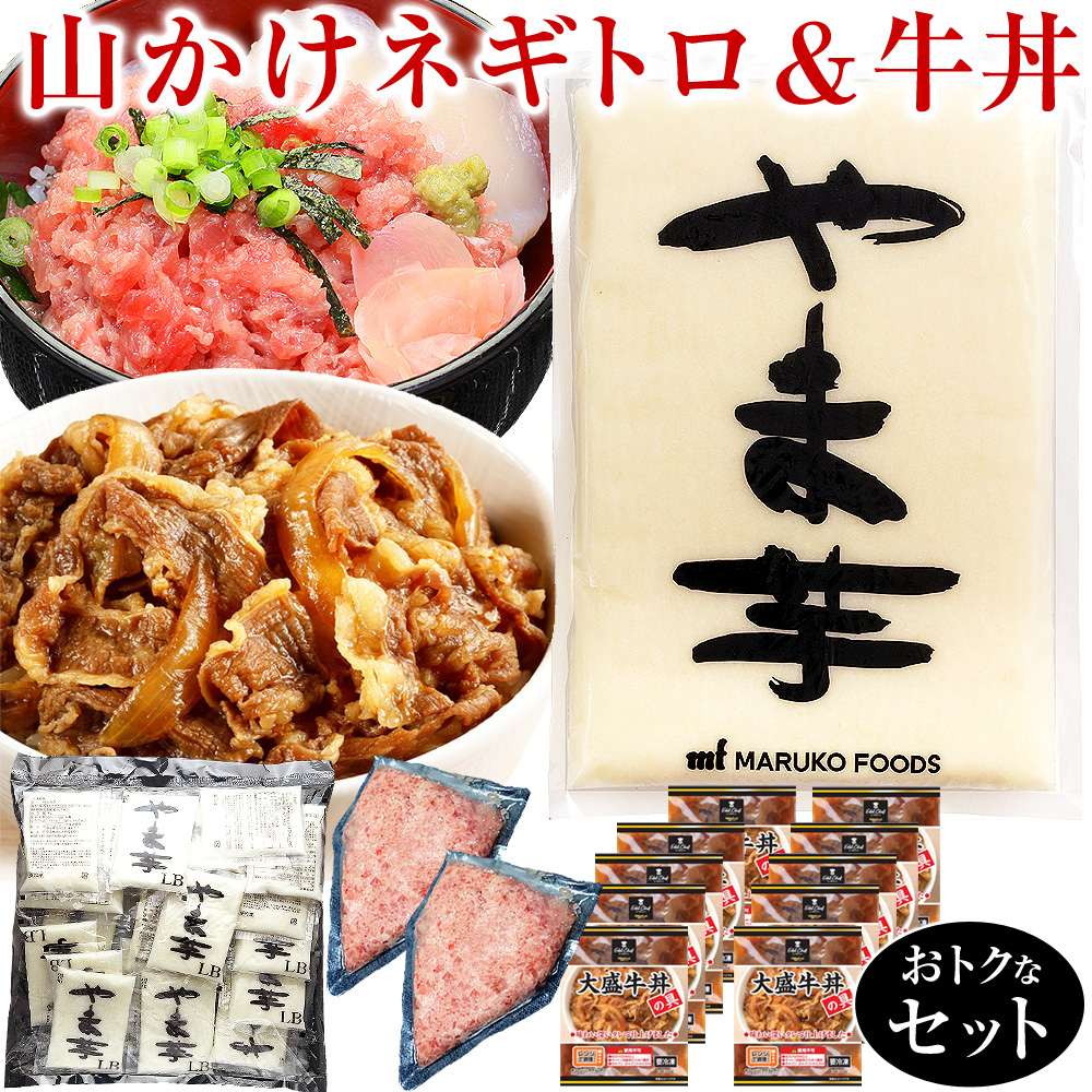 ![]() | ◆山かけネギトロ&牛丼セット (やま芋20袋入1パック&ネギトロ300g2パック&牛丼10食) ![]() |