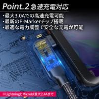 L字 USB充電ケーブル 180°回転 iPhone Lightning USB-C Type-C MicroUSB Type-A 急速充電 高耐久 メッシュ 1.2m 2m
