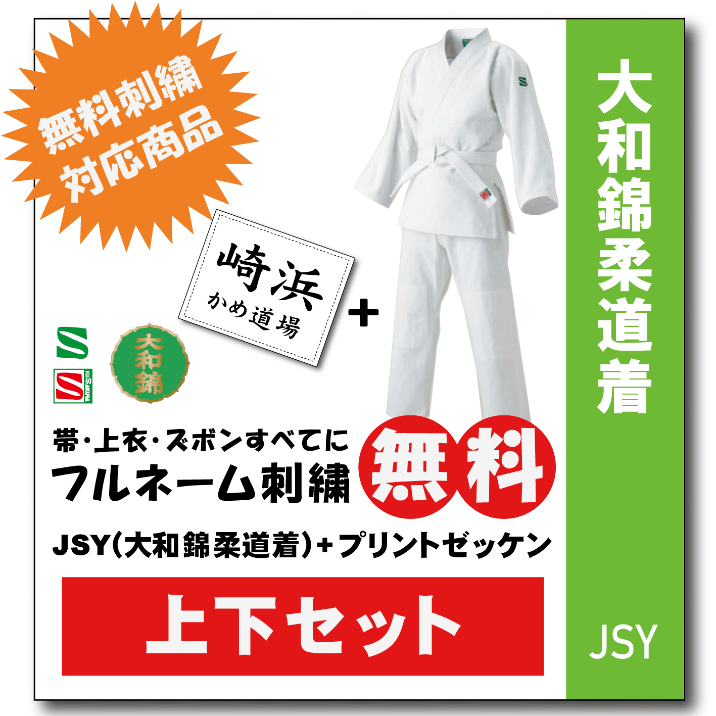 柔道着 子供 上下 九櫻 JSY 大和錦 帯付き プリント ゼッケン 縫付け込み ネーム 刺繍 無料
