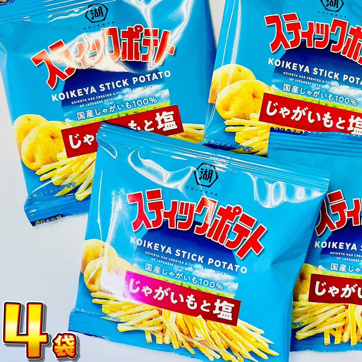 500円 送料無料 湖池屋 スティックポテト じゃがいもと塩 小袋 4袋 メール便 送料無料 500えん 送料無料 ポイント消化 訳あり お試し