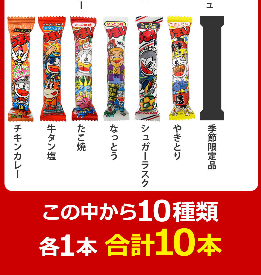 下記の中から うまい棒 10種類合計10本セット(各種1本)