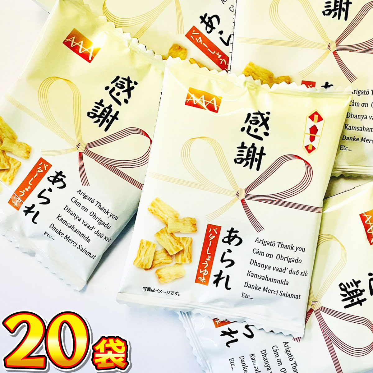 ヤスイフーズ 感謝あられ バターしょうゆ味 20袋 メール便 送料無料 駄菓子 つかみどり バラまき ポイント消化 お試し 訳あり 景品
