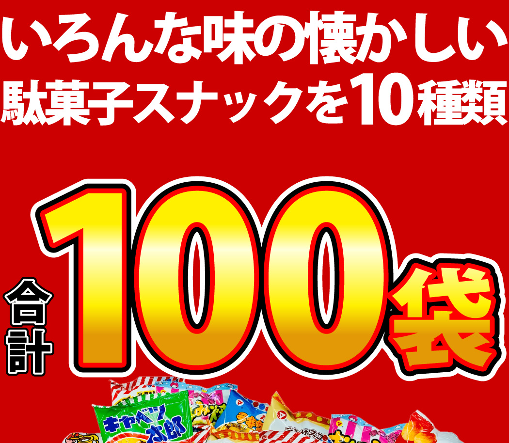 駄菓子スナック好き大集合!超メガ盛り!10種類100袋セット スナック菓子 小袋 大量 お祭り お菓子 詰め合わせ 駄菓子 詰め合わせ つかみどり 送料無料