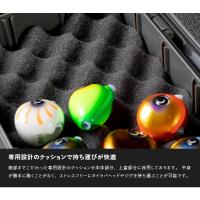 最大の特徴である内部のクッションは何度もテストを繰り返し、硬さ、高さ、クッションの溝の間隔や深さ等に徹底的にこだわって開発した専用設計です。これによって、タイラバヘッドは勿論、ビンビンスイッチやメタルジグなど、様々な形やサイズのルアーをピタッと収納することが可能です。