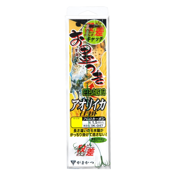 段差になったダブルの掛け鈎で、アオリイカを絡めるようにゲットします。警戒されにくいグリーンカラー