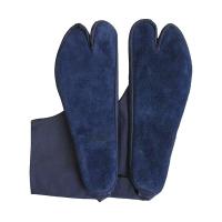 足をしっかりとホールドするマジックテープ式の紺の皮底足袋です。皮は牛革のバックスキンを使用しており、素足感覚で滑りすぎず、激しい動きにも耐えられます。
