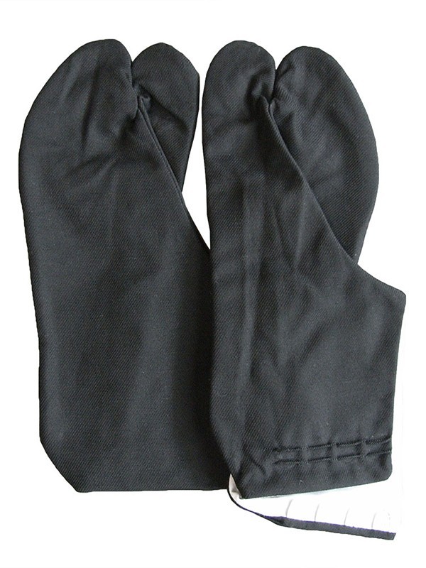 張りと弾力のある生地を使い丁寧に縫製し、足をしっかりとホールドしますので、烏足袋「からすたび」として、歌舞伎の“黒子”さんや大道具等の伝統芸能に従事される裏方さん用の足袋としても最適です。