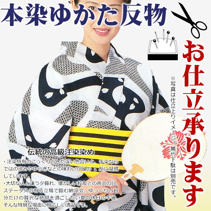 | 伝統の染色技法で染め上げたハイグレード!注染本染め浴衣反物 繊維の奥までしっかりと染料を染着させた奥行と味わいのある高品位ゆかた着尺 お仕立も承ります | |