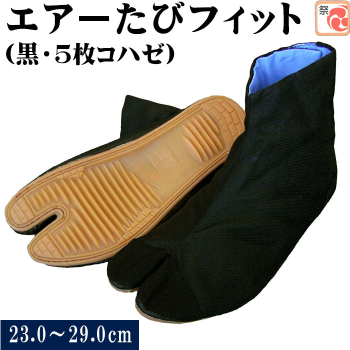 エアーたびフィット 黒 5枚コハゼ 力王のエアー入り祭り足袋 まつり用足袋 神社 神輿 山車 市民祭り用地下足袋 祭り用品