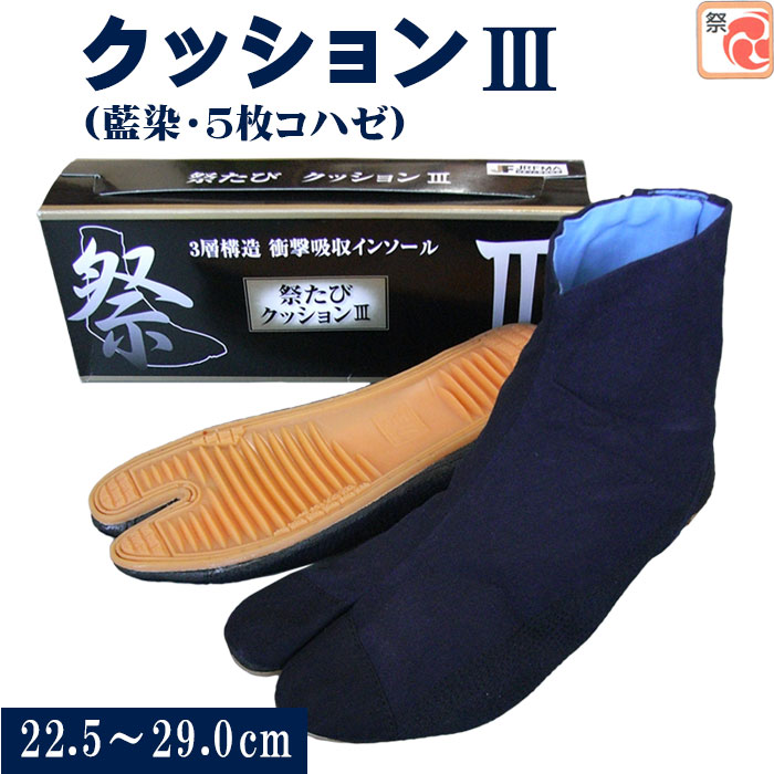 祭足袋クッション3 藍染 5枚コハゼ 力王の祭り足袋 まつり用足袋 神社 神輿 山車 市民祭り用地下足袋 祭り用品 zm-1115